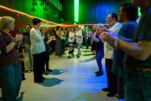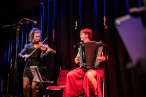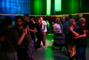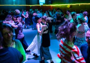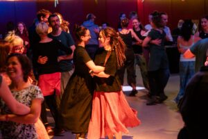 Folkmusik eignet sich hervorragend zum Zuhören und zum Tanzen. Wir möchten beide Facetten zeigen und eine Brücke zwischen den Konzert- und Tanzszenen sein.