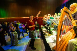 An zwei Probetagen (je 2-3 Stunden) werden wir uns unter der Leitung von Vivien Zeller gemeinsam auf das Konzert vorbereiten, Melodien und Tanzgrooves lernen und die besondere Freude des gemeinsamen Musizierens erleben.